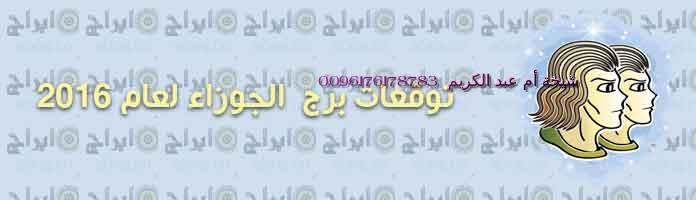 توقعات برج الجوزاء 2016-شيخة أم عبد الكريم 0096176178483 للتواصل والإستفسار يرجى الإتصال بالشيخة الروحانية أم عبد الكريم على الرقم التالي : هاتف: 0096176178483 (21 أيار – 21 حزيران) شهر يناير 2016: تتوقع نمواً هائلاً في الحياة المهنية والتجارية، أما الحياة الأسرية سوف تأخذ المقعد الخلفي. شهر فبراير 2016: نرى فرصاً جديدة للتعلم والتطور، وازدهار الأعمال التجارية، والسفر والتعرف على أشخاص جدد ذوي نفوذ! شهر مارس 2016: من المتوقع أن يكون صعباً على الصعيد الشخصي، وتشير توقعات برجك في 2016 بأنك سوف تحتاج إلى الكثير من التفكير قبل أن تخطو خطوات جدية في حياتك الرومانسية. شهر أبريل 2016: هو شهر تتحسن فيه العلاقات الأسرية والعائلية ، ويكون شهر جميل للعازب شهر مايو 2016: تخطو خطوات جديدة في حياتك المهنية وقد تبدأ بمشروع جديد أو عمل جديد . شهر يونيو 2016: إنجازات مالية مهمة ، ولكن حياتك الصحية قد تكون معقدة قليلاً ، انتبه للكبد والكليتين هذا الشهر. شهر يوليو 2016: استمرار لنموك التجاري ونجاحك المالي، تتمتع هذا الشهر بعمل عظيم وحياة أسرية سعيدة. شهر أغسطس 2016: يطلب منك أن تكون على استعداد للنزاعات في علاقاتك ، سواء الشخصية أوالمهنية. شهر سبتمبر 2016: سيكون شهراً مثيراً، قد يكون هناك سفر أو رحلات غير متوقعة ، تنعم بأوقات جميلة مع الشريك. شهر أكتوبر 2016: حياتك الصحية تبدو مستقرة وجيدة قد تحب القيام بأنظمة الحمية والتمارين الرياضية ، وهو شهر جيد للزواج أو إنجاب طفل. شهر نوفمبر 2016: قد تعاني من تراجع في حياتك المهنية ، قد تضطر لدفع بعض المستلزمات المالية لسبب أو لآخر شهر ديسمبر 2016: هو شهر الأنشطة الاجتماعية. الخاطبين والمخطوبات قد يخططن للزواج. المال لن يكون مشكلة، وسوف تكون في سلام مع نفسك. بشكل عام برج الجوزاء في عام 2016 يتوقع منه الاستفادة من جميع الفرص التي تأتي في طريقه، كما أن الابتكار والرغبة في تحمل المخاطر هو مفتاح النجاح لنجم الجوزاء هذا العام. 2016-01-28 admin_elso